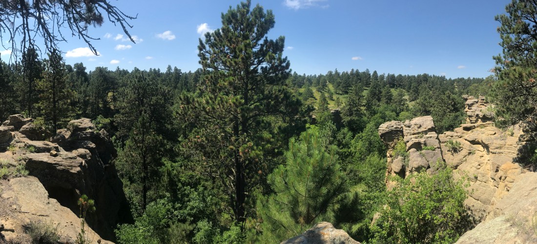 Before reaching our next destination, Theodore Roosevelt National Park, we spent 3 nights on a free campground called “Picnic Springs.” It’s in the middle of nowhere. Every campsite has mesas, cliffs, and rock formation, and ponderosa pine roots twisting and turning around rocks, hanging over the ledge. Our trailer and the campground clearance are surrounded by these pines, and behind it we have a small overhang, just for us.